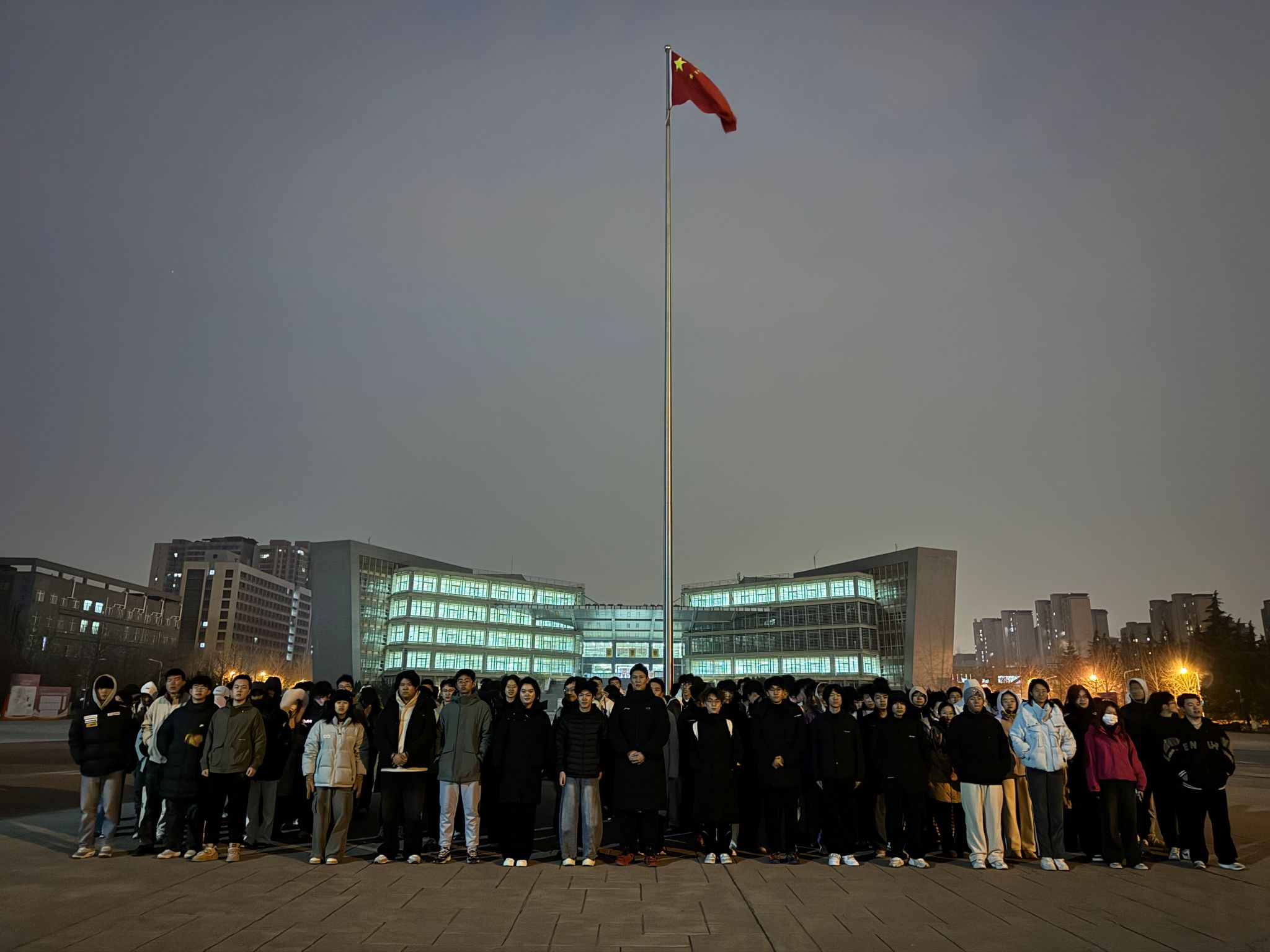清晨6时50分,经纬广场上已汇聚成一片青春的海洋。同学们精神饱满、肃立静候,展现出昂扬向上的集体风貌。7时整,升旗仪式正式开始。学院国旗护卫队迈着铿锵有力的步伐,护卫国旗走向升旗台。在师生的注目下,鲜艳的五星红旗随着雄壮的《义勇军进行曲》冉冉升起,迎风飘扬。在场师生齐唱国歌,歌声嘹亮,情感真挚,表达了深深的爱国之情与民族自豪感。